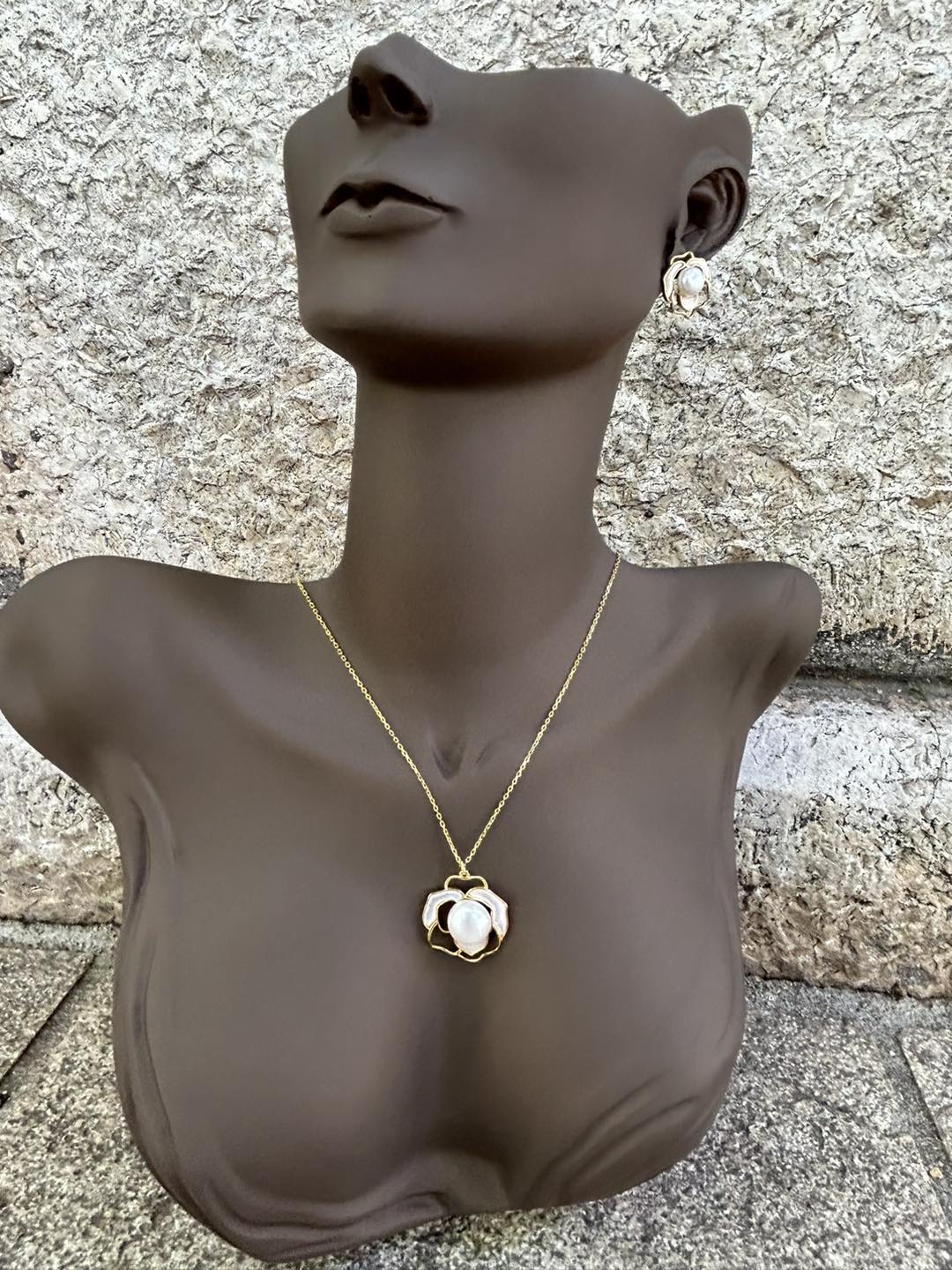 Lanac, naušnice i prsten u pozlati